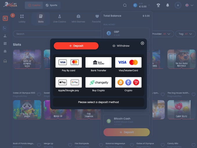 ForzaBet offers a well-rounded selection of payment options, giving players the flexibility to choose between traditional banking and modern crypto transactions. Credit and debit cards such as Visa and Mastercard are supported, along with secure bank transfers.
