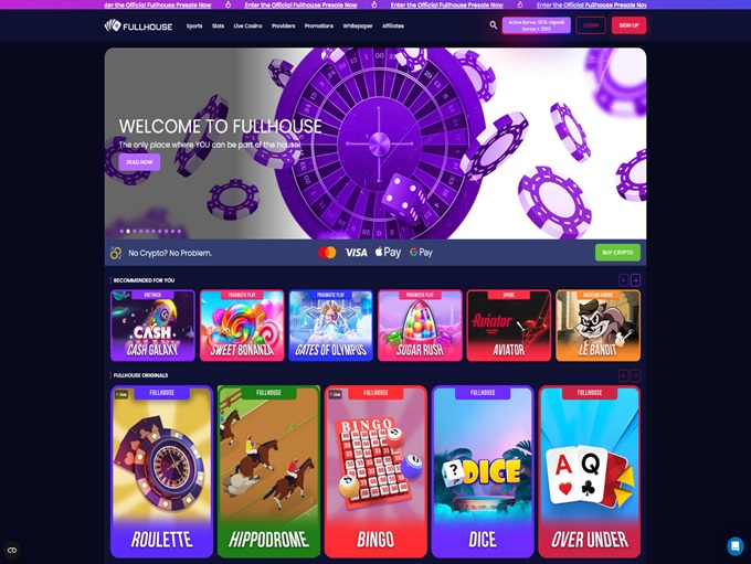 Fullhouse Casino made its debut in 2024, bringing a mix of popular casino entertainment and a sportsbook designed for those who enjoy variety. The platform offers a great selection of slots, table games, and live dealer experiences, catering to both casual players and seasoned gamblers. Sports enthusiasts will also find plenty of betting opportunities within the sportsbook.