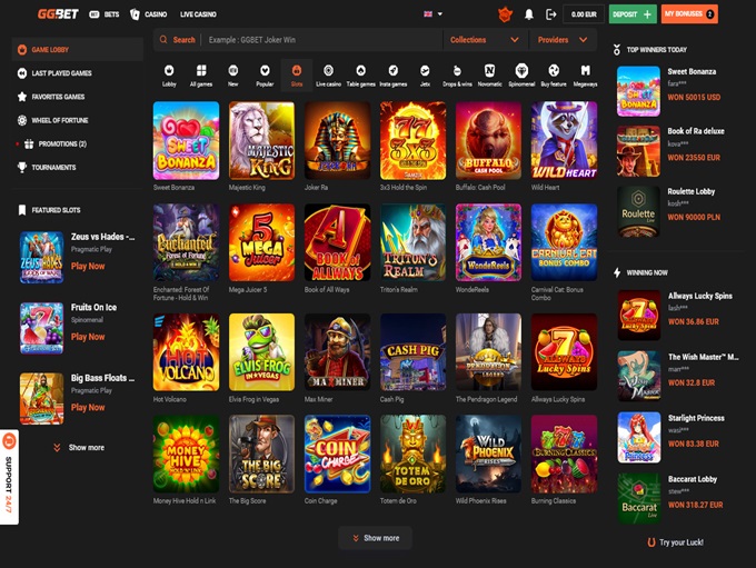 The main page of GGBet is packed with a variety of games and features, which can be overwhelming for newcomers. At first glance, the platform may look like a typical sportsbook with various sports offerings, results, and bets. However, if you want to explore slots and other fun casino games, simply select the ‘Casino’ option at the top of the page to proceed to the exciting collection of games.