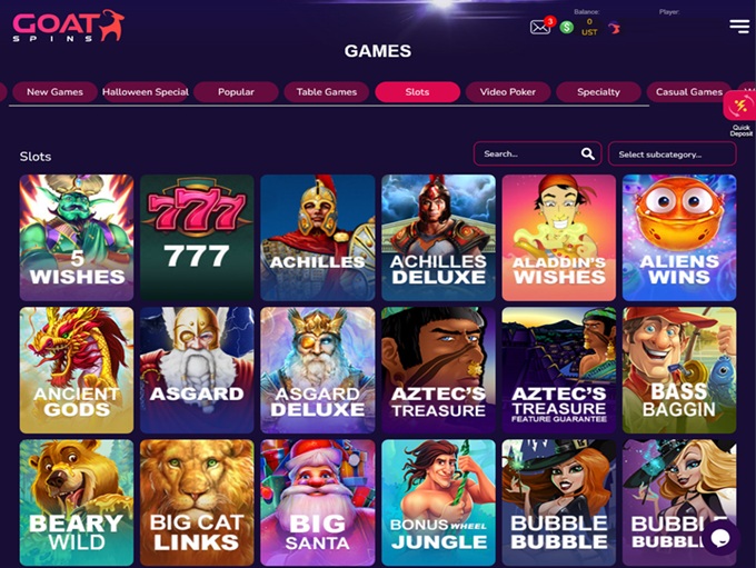 Goatnight Bonus is another way to boost your account. It’s a low wager bonus and is available 3x per day, from 00:00 to 06:00 EST. Enjoy!