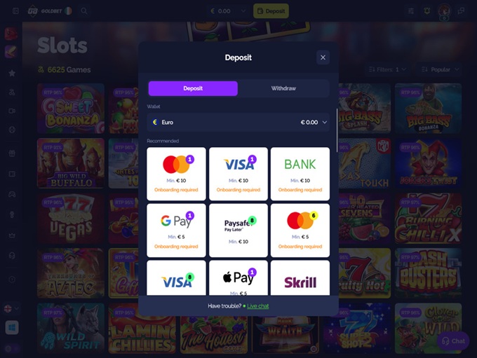 GoldBet Casino gives players plenty of ways to manage their funds, offering both traditional and modern payment methods. The options available depend on where a player is based, so while some regions will have a broad selection, others may see a more streamlined list.