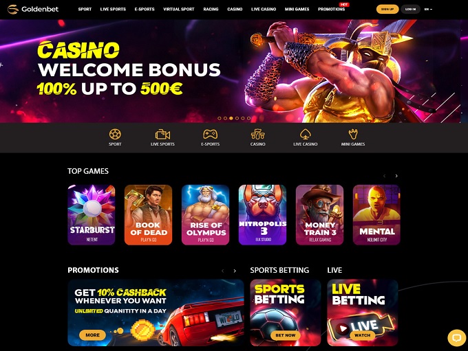 GoldenBet is owned and operated by Santeda International BV, a company regulated by the Government of Curacao. This is an online casino that offers a catalogue of games, including casino games, live dealer rooms, live sports events, e-sports, and more.