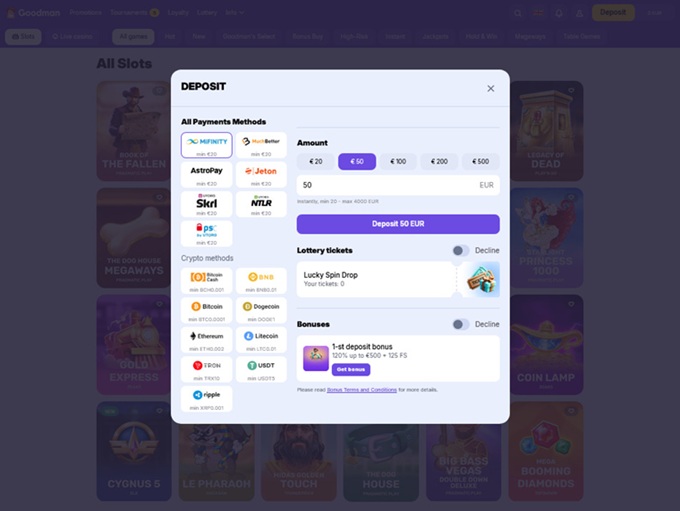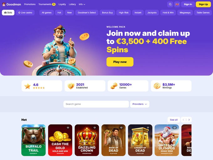 Goodman Casino is an online gambling site launched by industry veteran, Dama N.V., in 2021. The site processes deposits, wagers, and payouts in local currencies as well as cryptocurrencies like Bitcoin.