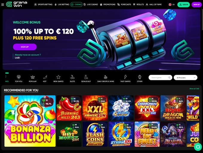 GranaWin Casino and sportsbook sounds like a place that wastes no time getting to the point! Welcoming players from Canada, Germany, Switzerland, and Austria, this online gambling hub is a place where you can try many different online slots, table games, and live dealer games. It also has a comprehensive sportsbook. Truth be told, you won’t find anything particularly unique here, but it’s enough to keep your attention.