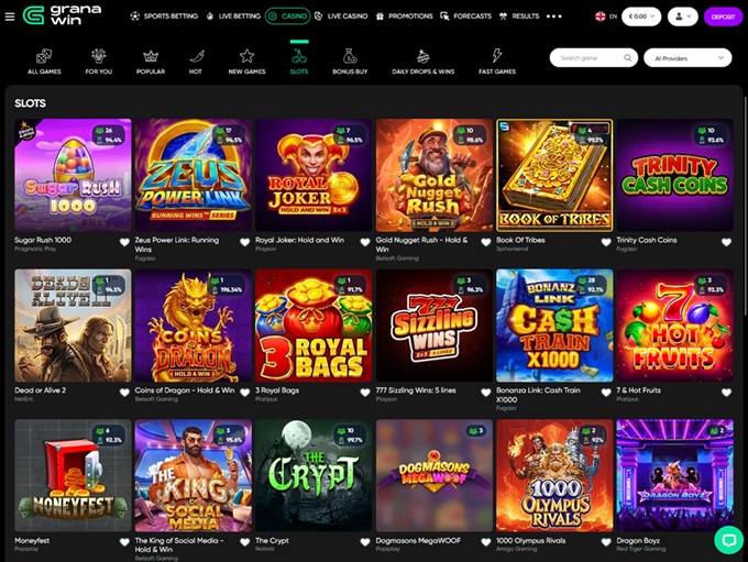 Granawin Casino doesn’t go small when it comes to its game library. The platform provides content from a long list of software studios, so the lobby feels busy. But in a good way! There’s always something new popping up, whether you’re in the mood for a quick spin or a longer session at the tables.