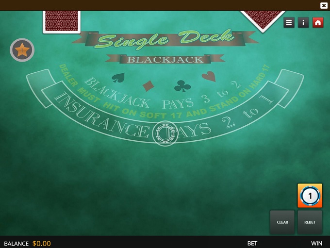 - Single Deck Blackjack