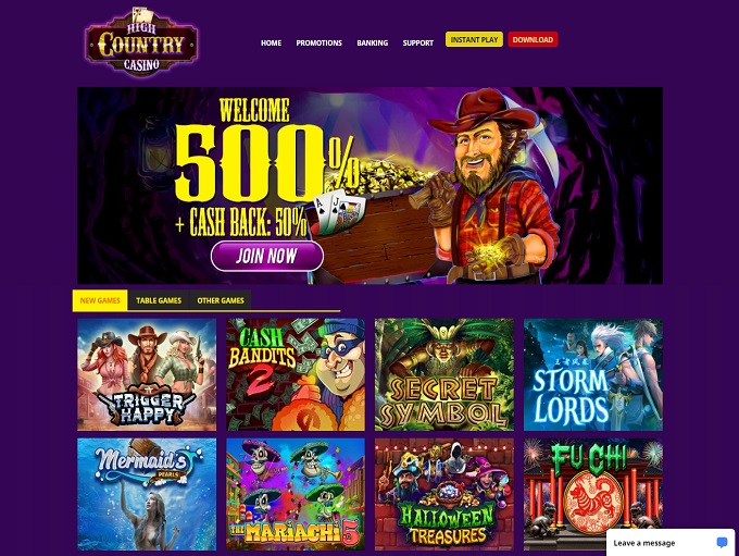 High Country Casino was launched online in 2020 by industry Realtime Gaming veterans, the Mainstreet Group.