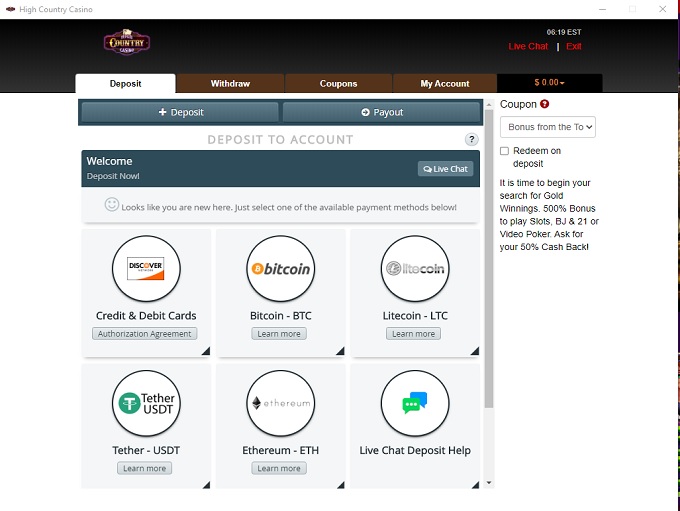 High Country Casino is one of the fastest-loading instant-play RTGs out there. During our tests, we were able to connect and quickly open games on very low bandwidth.
