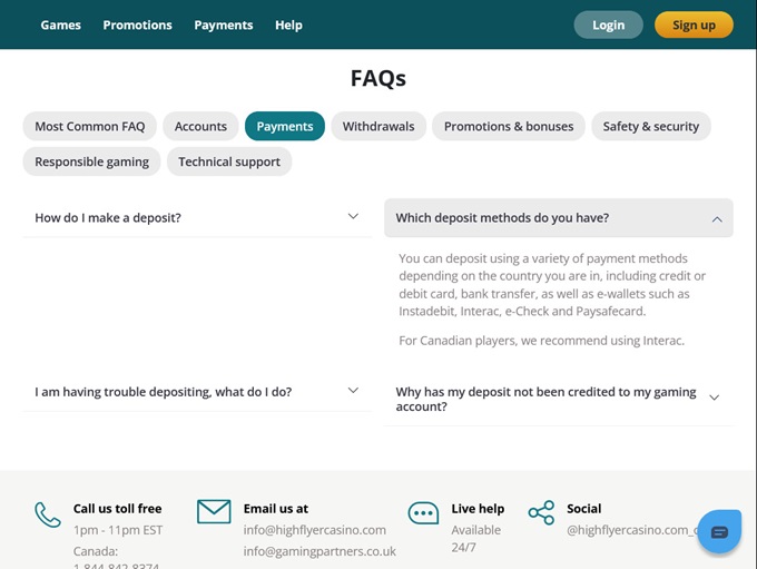 If you’re the type who can’t wait and need answers yesterday, they’ve got a FAQ section manned by their dedicated team members, primed to tackle your burning questions. And for those in a real hurry, High Flyer Casino even offers phone support. Just ring up their toll-free hotline in Canada between noon and midnight EST.