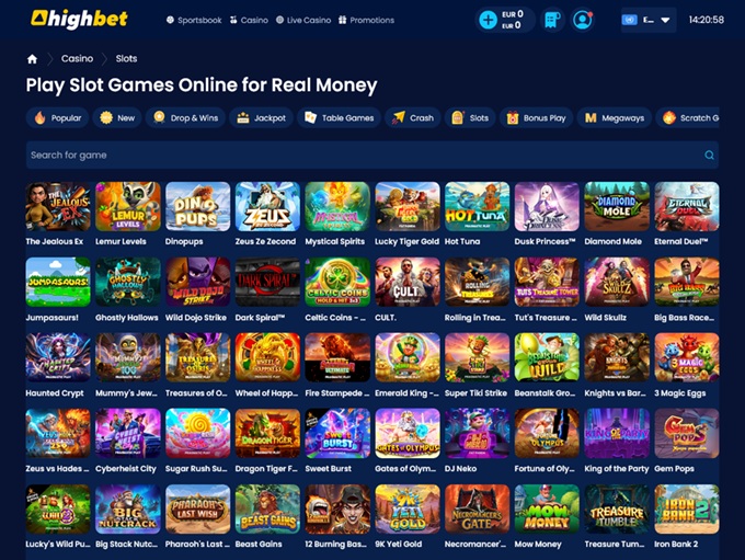 Highbet features a variety of promotions including ‘no deposit’ bonus offers and a welcome package. You will see bonuses available to players from your country first, but you can also click the button below to see offers meant for players from other countries. There are also cashback, daily promotions, and extra spins.