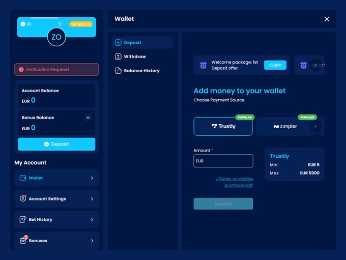 Highbet offers a wide range of payment options like Visa, MasterCard, Neteller, Skrill, EcoPayz, AstroPay Card, PayPal, Trustly, MuchBetter, and Paysafe Card.