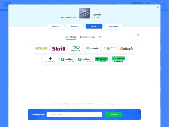 Upon registering an account, players can choose from a variety of deposit methods, including Visa, Mastercard, Google Pay, Beeline, Neosurf, Tele2, Interac, Piastrix, Apple Pay, Paysafecard, Giropay, EPS, Pay4Fun, ePay, Nordea, Trustly, Ecopayz, Privat24, Rapid Transfer, SticPay, iDebit, MuchBetter, Astropay, Gcash, MiFinity, Venus Point, GrabPay, MultiBanco, Kcell, Skrill, and Neteller.