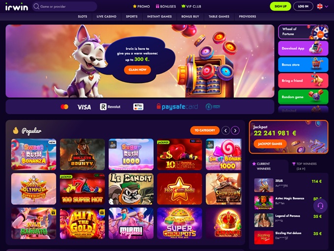 Irwin Casino delivers a modern platform designed for effortless navigation and a visually engaging experience. The interface strikes the perfect balance between style and functionality, featuring bold colors, sharp graphics, and an intuitive layout that aligns with the latest industry trends.