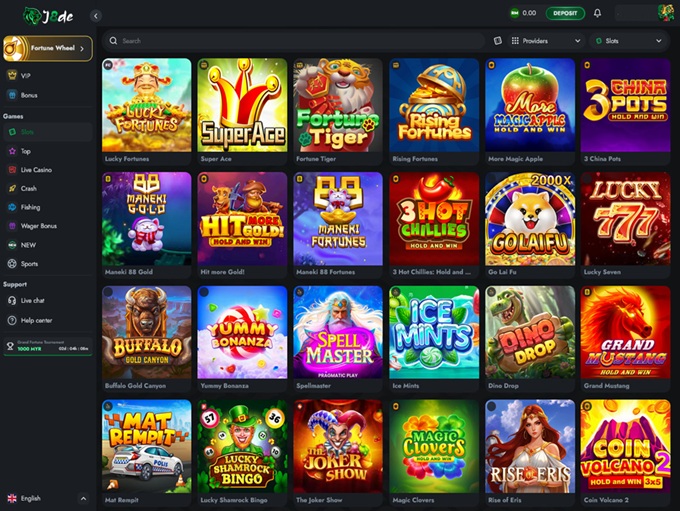 Beyond the welcome package, regular players will find reload bonuses, weekly cashback, and deposit rewards. There’s also a tiger-themed spin feature, ‘Wheel of J8de,’ where deposits convert into coins that unlock prize wheels. It’s a playful addition and fits the brand.