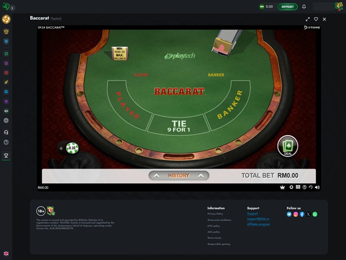 Before the first deposit, you must submit your full name. Registration itself requires only basic details, but funding the account calls for that extra step. The casino accepts deposits in MYR, with entry amounts that stay relatively low for fiat methods. Crypto minimums vary by network. In most cases, deposits land in the account within minutes. If a confirmed transaction doesn’t show up within a day, you should contact support.