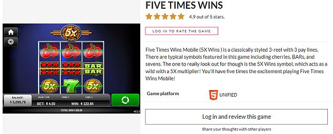 Be sure to try Five Times Wins if you are not familiar with Rival's high RTP, high volatility 3-reels. Games like Heroes' Realm and Cash Cow are easier on the bankroll, but rarely produce the huge wins possible with 5X or MegaWins.