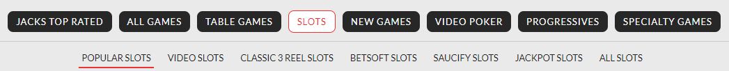 In fact, all of the filters except for one present games from all of the providers. There is one category players can click on to find further filters. That category "Slots".