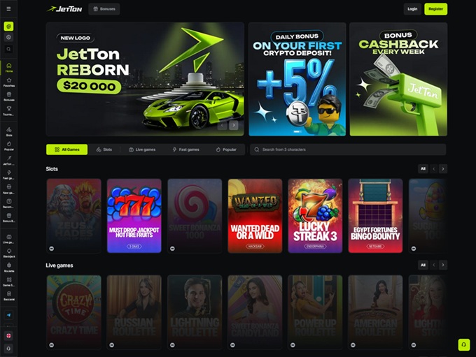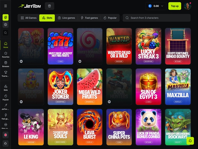 Jetton delivers a massive gaming lobby powered by a long list of well-known studios, including Hacksaw Gaming, Evoplay, Spinomenal, Pragmatic Play, Relax Gaming, Habanero, and many others. With thousands of titles on offer, players can move between quick-action games and more strategic options without ever running out of choices.