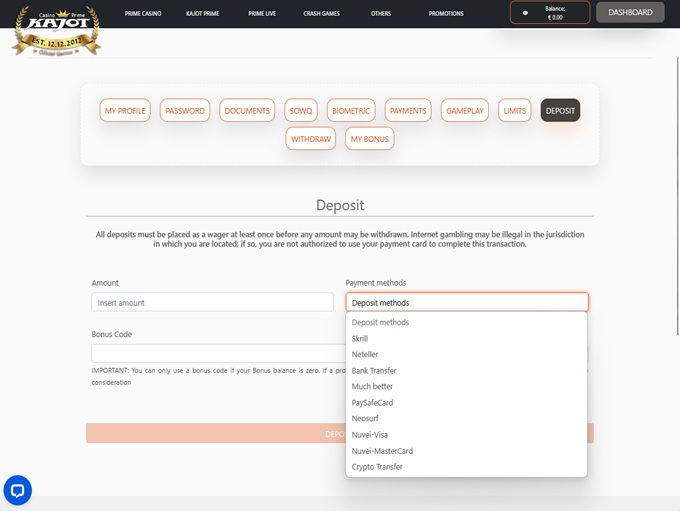 We find several payment methods available for deposits and withdrawals. Methods that work in both directions include Visa/Mastercard, Skrill, and Neteller. You can also withdraw via bank wire if you have deposited with one of the other methods.