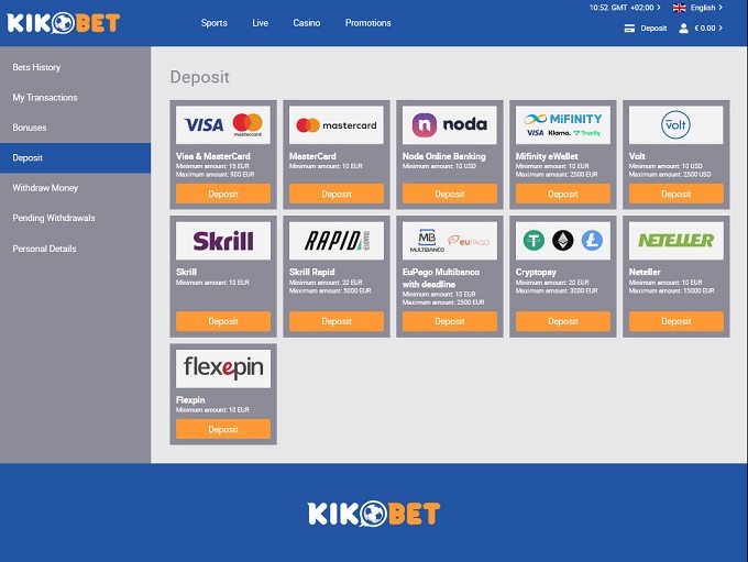 The welcome promo at KikoBet allows all new players to receive bonuses on their first couple of deposits. If you deposit at least the amount set by the platform (which is acceptable for players) you will receive a bonus up to the maximum amount set for the first deposit, then half matching bonus of the amount set for the second deposit (which amount is greater than for the first one)