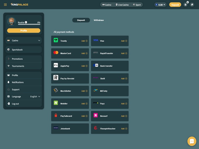 And we are officially amazed! KingPalace Online Casino supports many different payment methods for both deposits and withdrawals. Players can fund their accounts through traditional banking options, popular e-wallets, and selected crypto solutions. The cashier section is neatly organized, so it doesn’t take long to find a preferred method and complete a transaction. Here are only some of the available options: