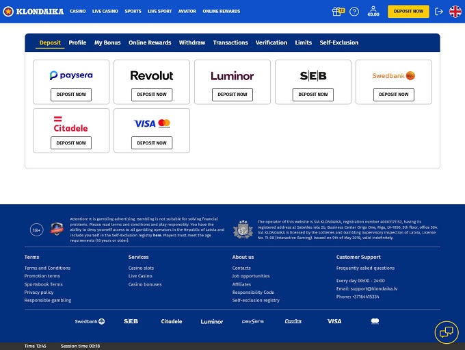 The license is issued by the Lotteries and Gambling Supervisory Inspection of the Republic of Latvia. The website is founded in 2018 and is owned by Sia Klondaika, so players may enjoy a plethora of exciting games and promotions.