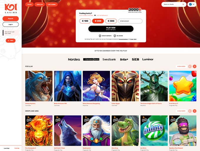 Koi Casino is a brand-new website from the company Njord Ventures BV. Licensed by Curacao, this online platform offers a decent range of both virtual and live games backed up by cryptocurrency payments. With a slick orange and white design, the website clearly goes the extra mile as to the aesthetic.