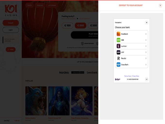 At first glance, Koi Casino looks like a promising gambling site with a nice design dedicated to its players. There is a large library stocked with lots of big brand names, but the variety is somewhat lacking. The majority of titles are video slots, with only a handful of table games and live dealers being available. As for payments, your options here are also limited, but on the upside, cryptocurrency is supported. Lastly, there are only two bonuses available, the welcome offer and the cashback. The operator should make some upgrades regarding transaction fees.