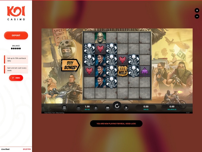 Koi has a welcome bonus with a decent offer. This can double up any amount. To qualify for the bonus, players will need to deposit a minimum amount as set under T&Cs. Additionally, before the players can withdraw any funds, players will need to clear the wagering requirement on both the deposited funds and the bonus funds. However, this will need to be done within a somewhat short timeframe in comparison to another similar platform. Although the wagering is set to a very short time frame, the process is made easier by the relatively lower turnover requirement.