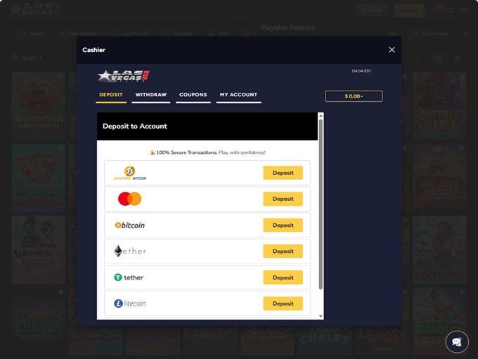 At Las Vegas USA Casino, all transactions are processed through Park Lane Services Ltd., a firm based out of London, U.K. The casino accepts US Dollars ($) as the standard transaction currency, though it gives you the choice of transacting in a currency of your choice. In the latter case, the casino merely converts the money you deposited in your preferred currency to the equivalent dollar value.