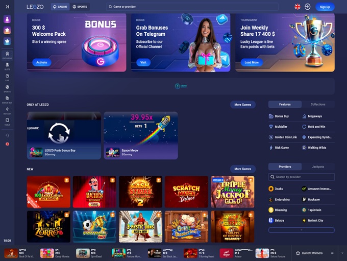 Legzo is an online casino from 2022 powered by Galaktika N.V. where players can explore a large sports betting section and a superb game catalog from a huge offering of software suppliers. The operator holds the Curacao license for this one but has many other platforms under its umbrella, so we should consider this venue as safe.