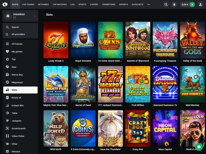 This online gambling house offers an extensive library of slots, table games, and more. All games, except for Live Casino games and Sports, are listed under the ‘Slots’ tab at the top of the page. While the navigation might initially seem quirky, players quickly get the hang of it.