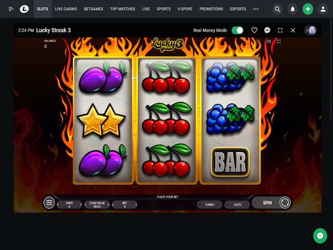 …is user-friendly and functional, with a well-organized layout available in both dark and light modes. Tabs at the top provide easy navigation to sections for slot machines, games, live casino games, card and table games, poker, sports betting, and promotions.