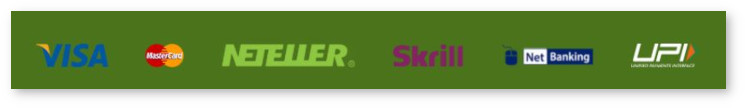 The site is constantly adding payment methods to the banking page. While this list might be longer or shorter when you read it, as of review time those methods including Visa, Mastercard, Neteller, Skrill, NetBanking, and UPI (Unified Payments Interface) for India.
