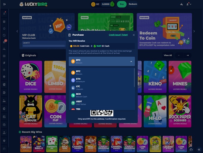 This crypto-only approach comes with its advantages and disadvantages. On the plus side, cryptocurrency transactions offer enhanced privacy, faster processing times, and added security. However, it may pose a challenge for players unfamiliar with using digital currencies. Regardless, this modern payment method aligns with LuckyBird’s forward-thinking approach to sweepstakes gaming, offering a unique experience for players ready to embrace the crypto era.