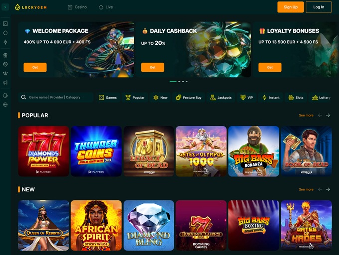 Having a great lineup of software vendors is equally important to some of us as bonuses, promotions, and payment methods. Luckily, Luckygem understands this. Some of the providers present here are Pragmatic Play, Wazdan, Relax Gaming, Thunderkick, Endorphina, Novomatic, Evolution Gaming, Booming Games, Tom Horn Gaming, Yggdrasil, Gamzix, Red Tiger, Spribe, and many more.