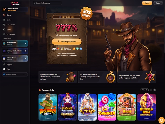 Mad Casino, launched in 2025, is an online gambling platform built for crypto players and bonus hunters alike. The site blends modern gaming with a bold Wild West theme, giving players a taste of the frontier where every spin or hand can feel like striking gold. Its sharp design and easy-to-navigate layout ensure smooth play, whether using crypto or traditional payment methods.
