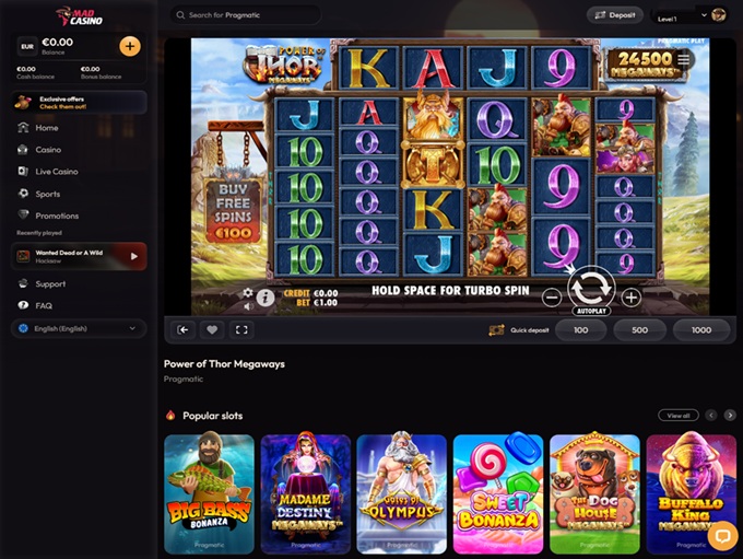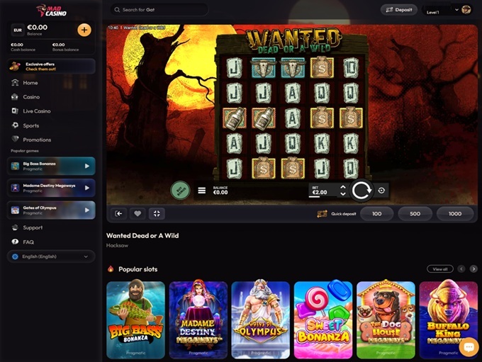 When it comes to aesthetics, Mad Casino brings a fresh twist to online gambling with its Wild West-inspired design. The dark background sets the stage perfectly, allowing game covers and promotional banners to stand out without being harsh on the eyes. The homepage is neatly structured, making it easy to jump between featured games, current bonuses, and the sportsbook.