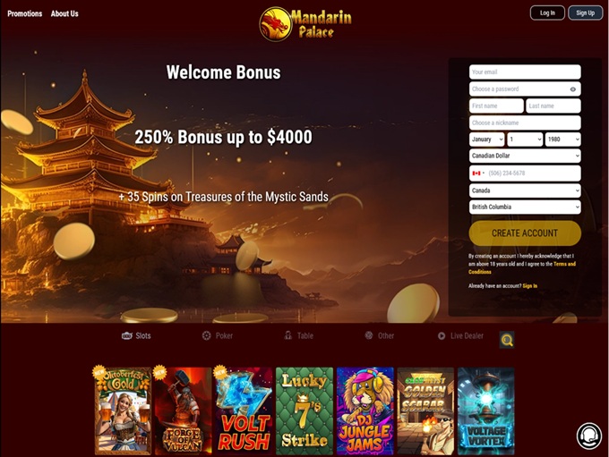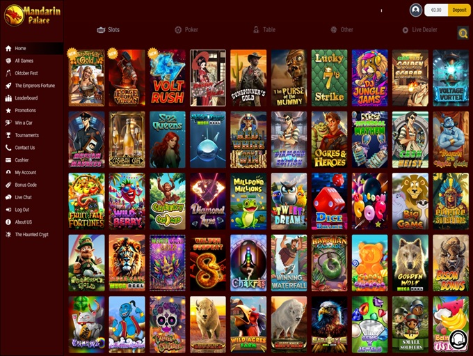 The website instantly highlights the sign up bonus on the home page and the winners on the scroll list at the right hand side. Everything that players want to know about the website is available on the homepage as a link or a logo. Mandarin Palace is run by the Genesys Technology group, and they accept US players.