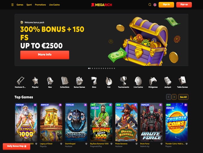 If you like switching things up, you might start with casino games, then spot a really good match on the schedule and feel like throwing in a bet too. Jumping from one tab to another can get annoying fast, but with Megarich Casino, everything is inside the same website. It combines the casino section and the sportsbook, so with one account you can move from slots to sports betting without the usual hassle of bouncing between different tabs or platforms.