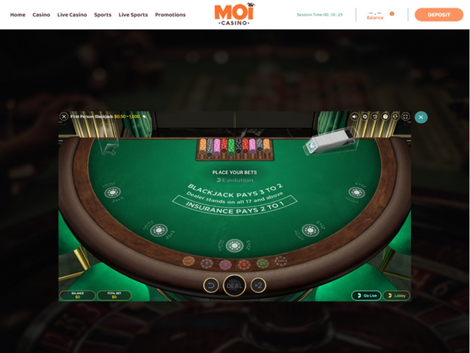 Moi Casino has a comprehensive offering of three, five and six-reel video slots from developers such as Elk Studios, Red Tiger Gaming, Thunderkick and Blueprint Gaming including a host of progressive jackpot titles such as the Starlight Fruits Mega Moolah advance from Microgaming. All of these come complete with a special ‘try demo’ feature that allows trepidatious punters in authorized jurisdictions to enjoy free-play sessions before laying down any cash.