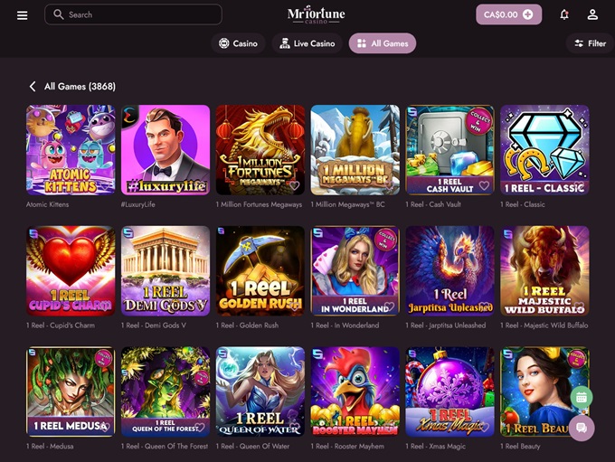 There’s no shortage of slots to choose from. Whether you prefer simple mechanics or in-depth gameplay with feature-packed reels, MrFortune satisfies all preferences! You’ll find everything from classic 3-reel games to video slots with cinematic graphics and immersive bonus rounds. Some standout titles include:
