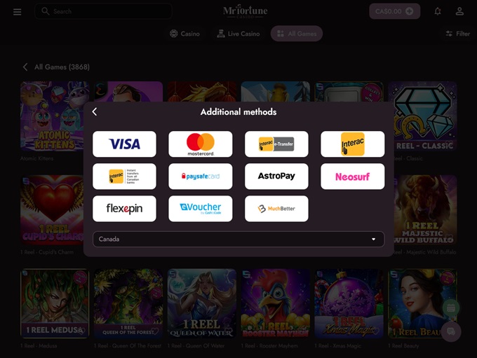 At MrFortune Casino, the setup is built with flexibility in mind. The minimum deposit requirement is refreshingly low, which makes it easy for players to test the waters without committing large sums. That alone can influence a decision to stick around rather than jump to another site.