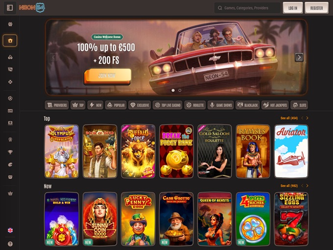 Top-rated software suppliers provide content at Neon54, including such companies as Habanero, BGAMING, Thunderkick, Quckspin, Pragmatic Play, Push Gaming, Red Tiger Gaming, and many more.