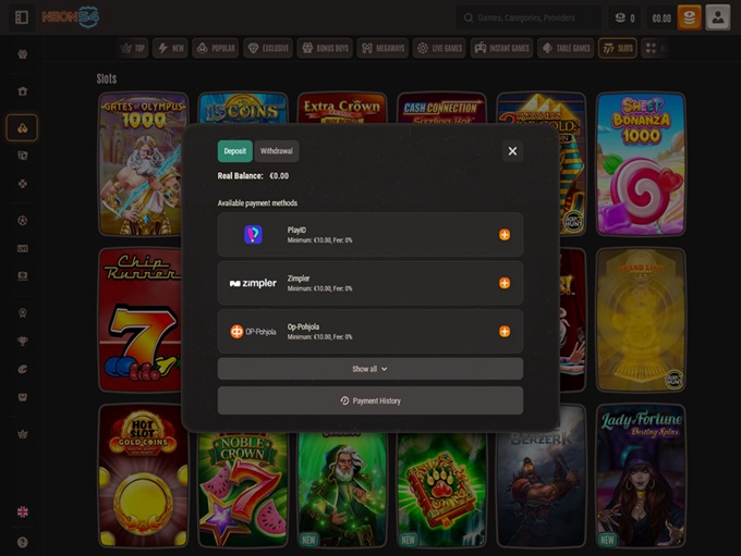 The deposit and withdrawal sections of Neon54 are quite vast. Players should have no trouble finding options for depositing and withdrawing funds. The most common methods include Visa, MasterCard, Skrill, Neteller, Paysafecard, and multiple cryptocurrencies.