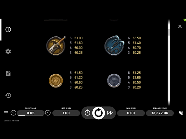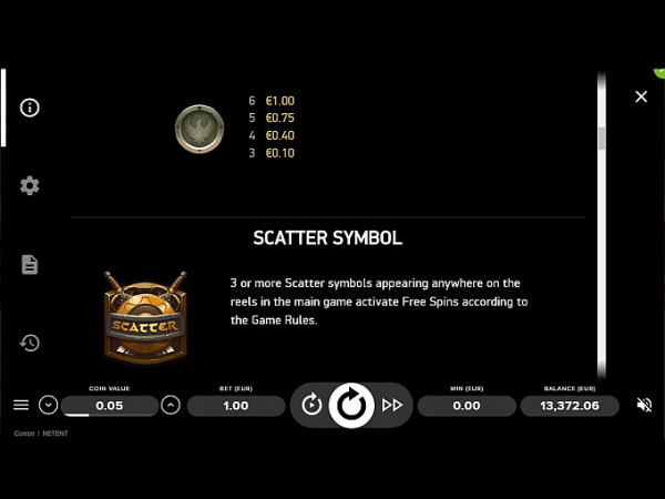 Even though it comes with a pretty large and uncommon grid (6 reels, 4 rows) Conan has 24 fixed paylines only. This means that you won’t be able to change the number of lines in a play while in order to score, you’ll need to land at least 3 identical symbols across a single line.