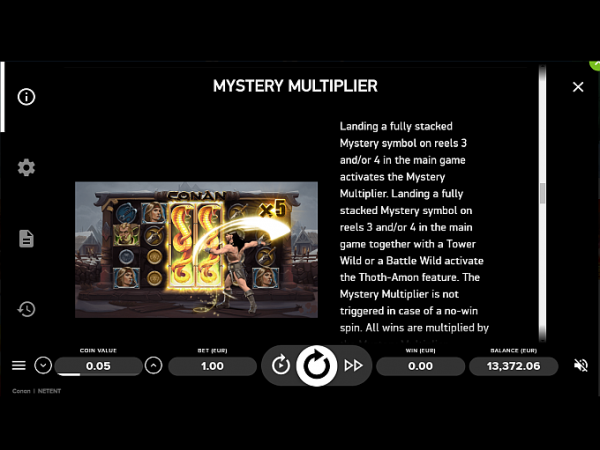 Combine fully stacked mystery symbols and tower wilds or battle wilds to trigger the Thoth-Amon feature which will randomly add 3-6 mystery on the grid.