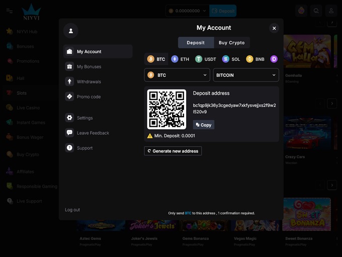 As a crypto-only casino, Niyvi operates exclusively with digital currencies, offering a seamless and private way to manage funds. Players can deposit and withdraw using various cryptocurrencies, ensuring quick transactions with added security and anonymity. The platform is tailored for crypto enthusiasts, making it an appealing choice for those who prefer decentralized payment methods.
