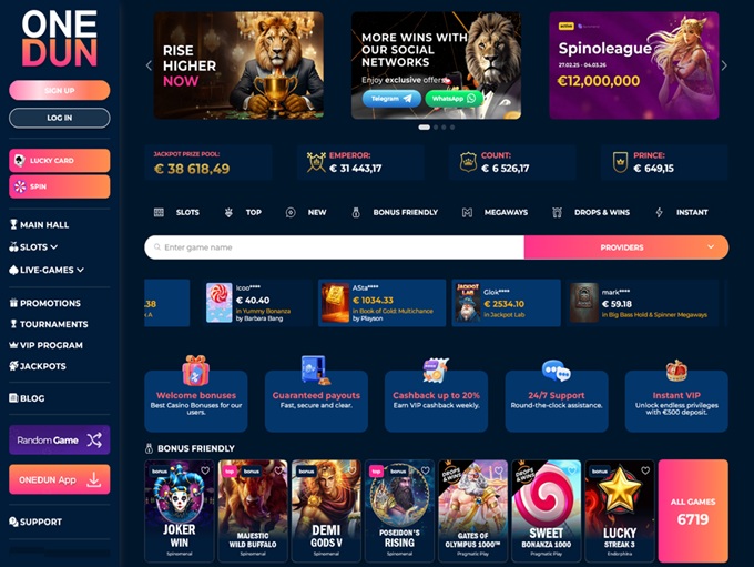 OneDun boasts a remarkable array of slot games that cater to the diverse tastes of its players. With a library spanning from classic fruit machines to cutting-edge video slots, it’s a veritable paradise for slot enthusiasts. Players can enjoy the appeal of three-reel classics and be hit with a little bit of nostalgia.