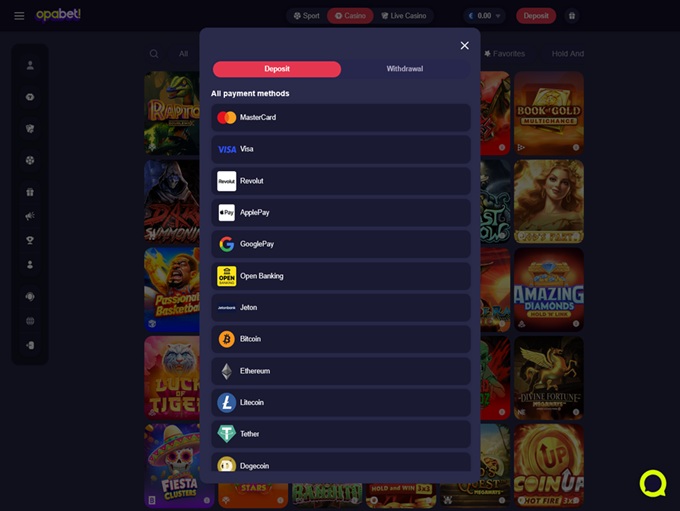 Opabet Casino gives players plenty of flexibility when it comes to payments, offering a mix of traditional and modern banking methods. Whether you prefer standard cards, e-wallets, bank transfers, or digital currencies, the platform supports a selection that works for a global audience. The aim is to keep things simple, secure, and convenient – no unnecessary complications!